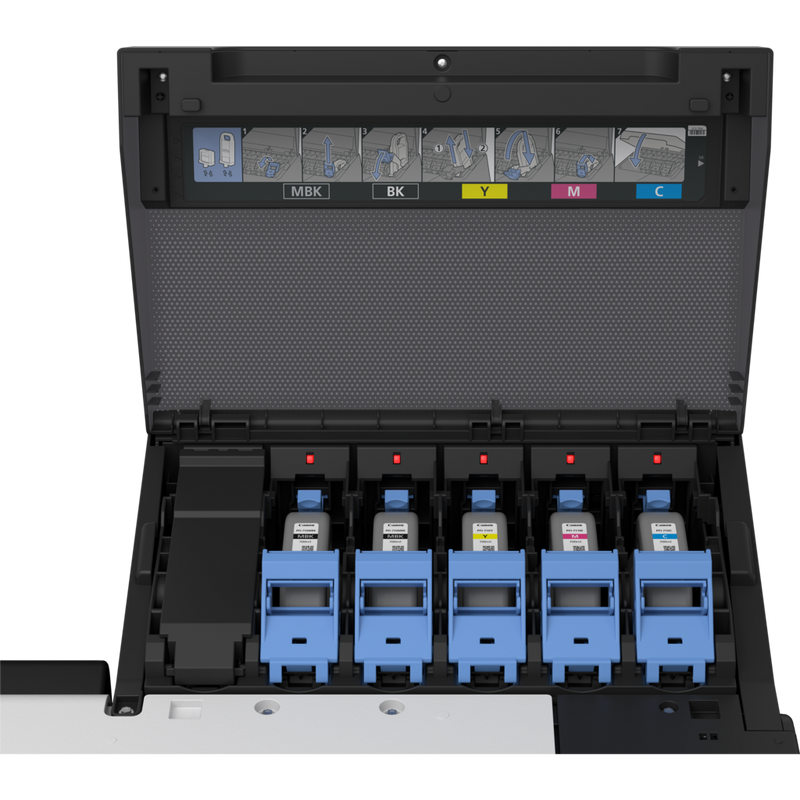 Zrýchlite tlač pomocou 5-farebnej 44-palcovej multifunkčnej tlačiarne, ktorá stelesňuje pôsobivú produktivitu s ešte jednoduchším používaním a profesionálnou kvalitou obrazu, spolu s pokročilým nastavením zabezpečenia na ochranu citlivých údajov a kompatibilitou so skenerom Z36.