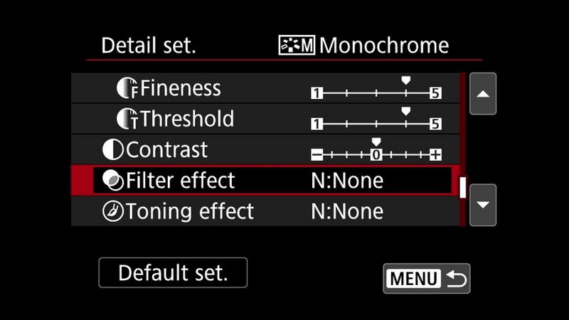 Monochromatický režim môžete rovnako ako ostatné štýly Picture Style prispôsobiť, aby ste dosiahli rôzne vzhľady. Môžete tak urobiť zvýraznením tohto štýlu v ponuke štýlov Picture Style a stlačením tlačidla INFO.